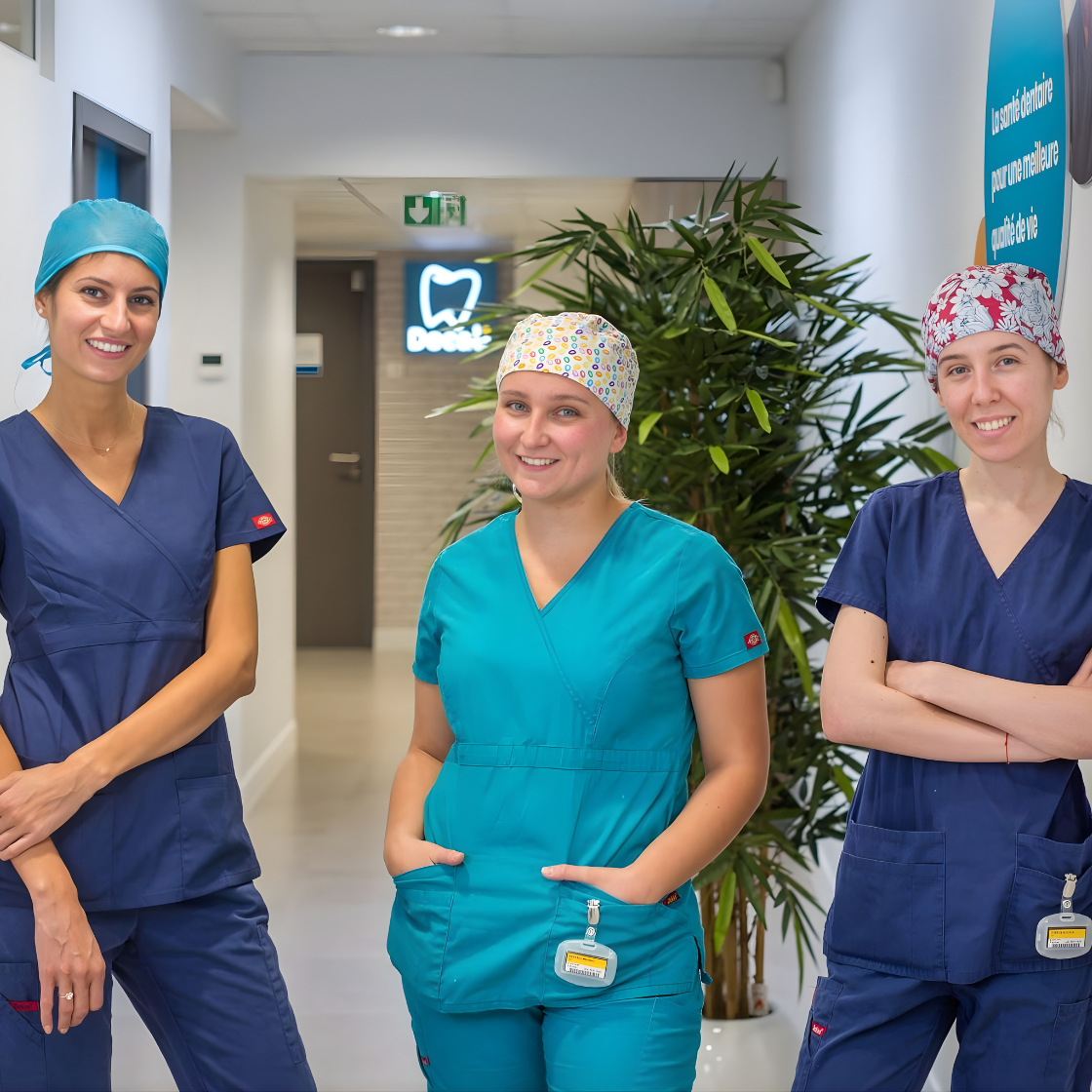 - Une équipe de chirurgiens-dentistes et d’assistantes dentaires